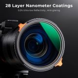 Crafted with high-quality materials, the 28 multi-coated polarizing and neutral density glass elements ensure optimal clarity and color accuracy in your images. The Nano-X Series coating reduces reflections and ghosting, enhancing overall image quality.